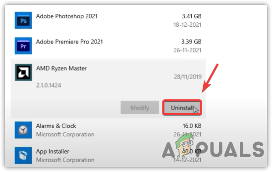 Go to Apps and Features - Look for the AMD Ryzen Master and click on it
