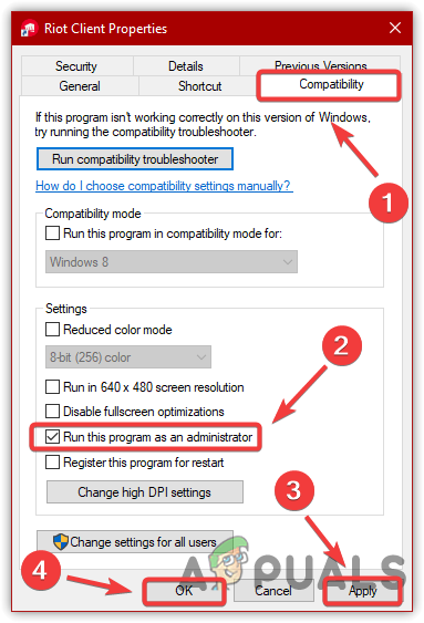 Modifying Compatibility Settings - Now launch the Riot Client and update the game. Once you update relaunch Riot and see if this fixes the Valorant keeps updating problem.