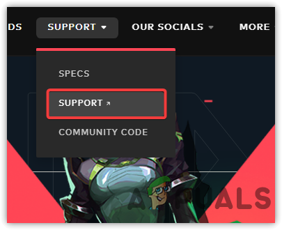 - Hover the mouse on Support from the top and click Support