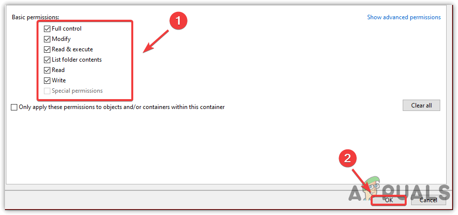 Taking Full Control of the Folder - Once done, click Apply and press OK to save the changes