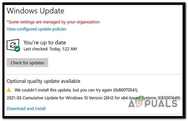 Checking for a new update - See if any new updates appear beside the update triggering the 0x80070541 error.